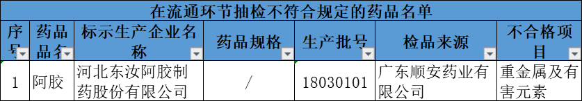 近期全省共抽檢43個(gè)藥品生產(chǎn)企業(yè)、184個(gè)藥品經(jīng)營企業(yè)和6個(gè)醫(yī)療機(jī)構(gòu)的287個(gè)品種共608批次藥品。經(jīng)核查確認(rèn),本期抽檢信息公布如下:287個(gè)品種607批次經(jīng)檢驗(yàn)符合藥品標(biāo)準(zhǔn)規(guī)定,1個(gè)品種1批次經(jīng)檢驗(yàn)不符合藥品標(biāo)準(zhǔn)規(guī)定,主要不符合規(guī)定項(xiàng)目為重金屬及有害元素等。