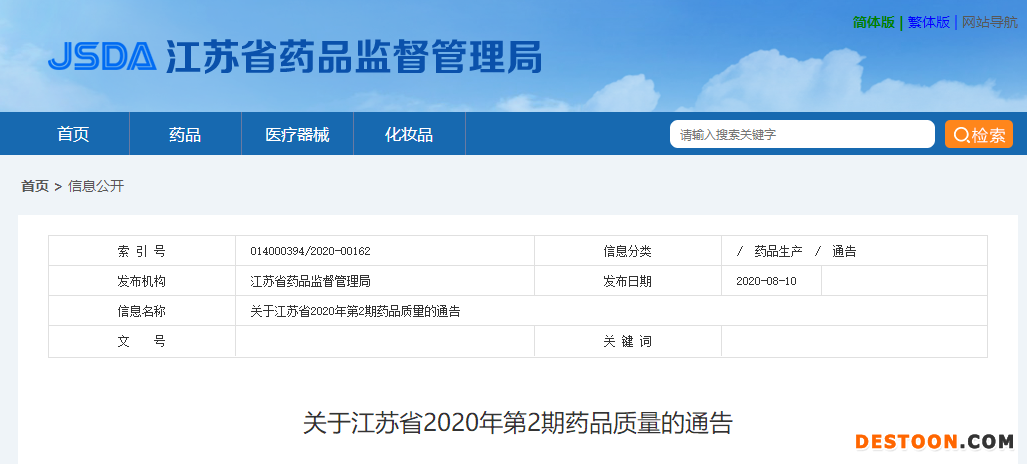 8月13日訊 8月10日,江蘇省藥監(jiān)局發(fā)布了“2020年第2期藥品質(zhì)量的通告”(以下簡稱“通告”)。