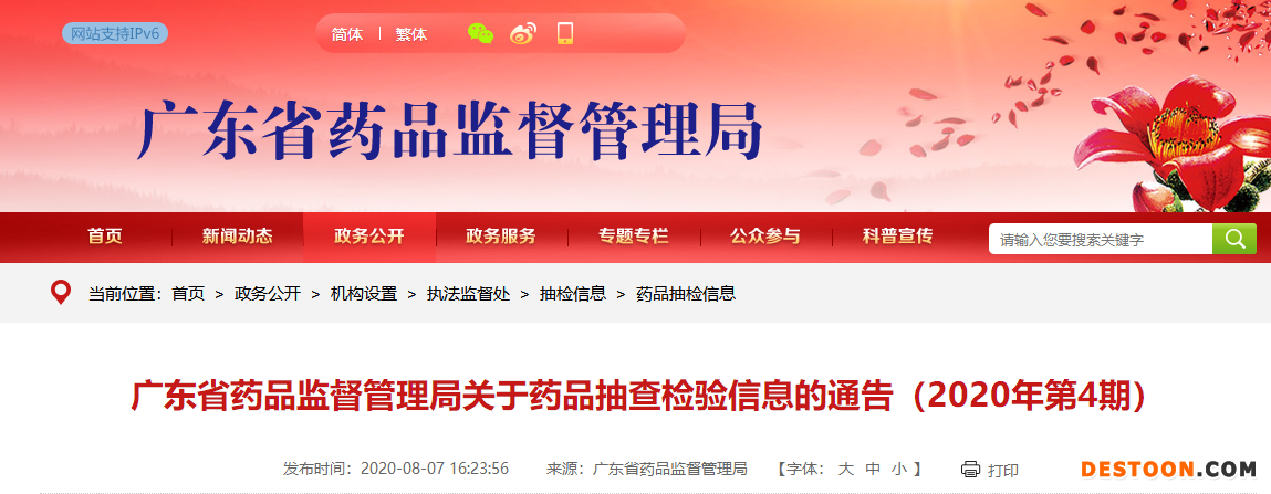 8月7日,廣東省藥監(jiān)局發(fā)布了“2020年第4期藥品抽查檢驗(yàn)信息的通告”(以下簡稱“抽查通告”)。