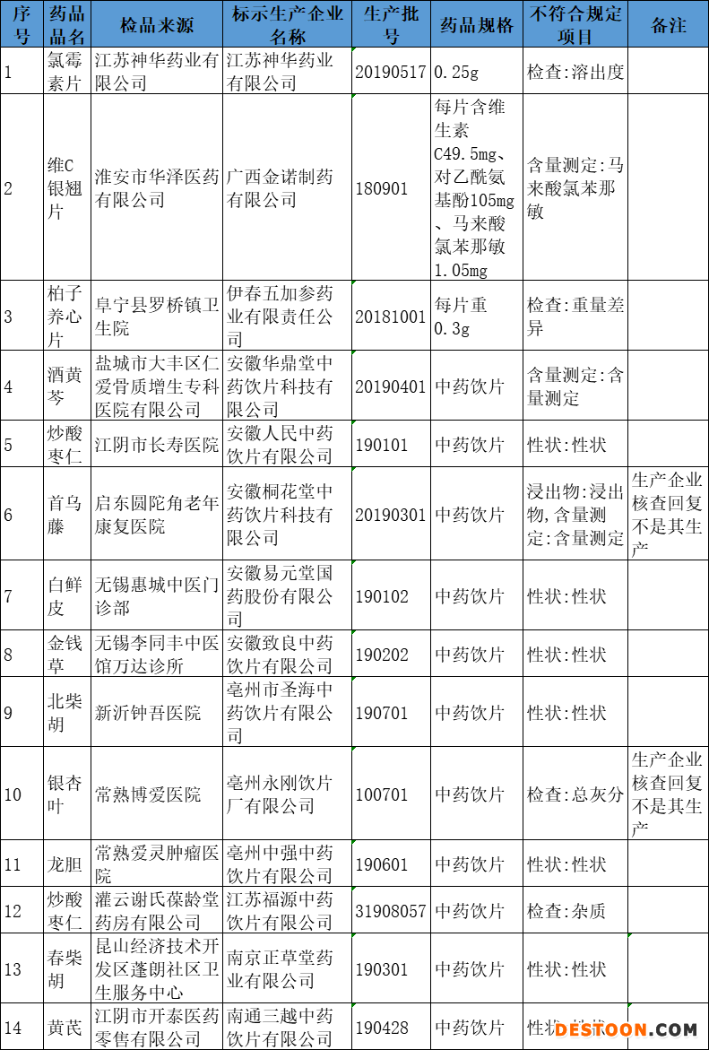 通告顯示,依據(jù)江蘇省藥品監(jiān)督管理局年度抽檢工作計(jì)劃,該局組織對藥品生產(chǎn)、經(jīng)營、使用單位進(jìn)行了抽檢。在抽檢中發(fā)現(xiàn),有14批次藥品不符合規(guī)定。