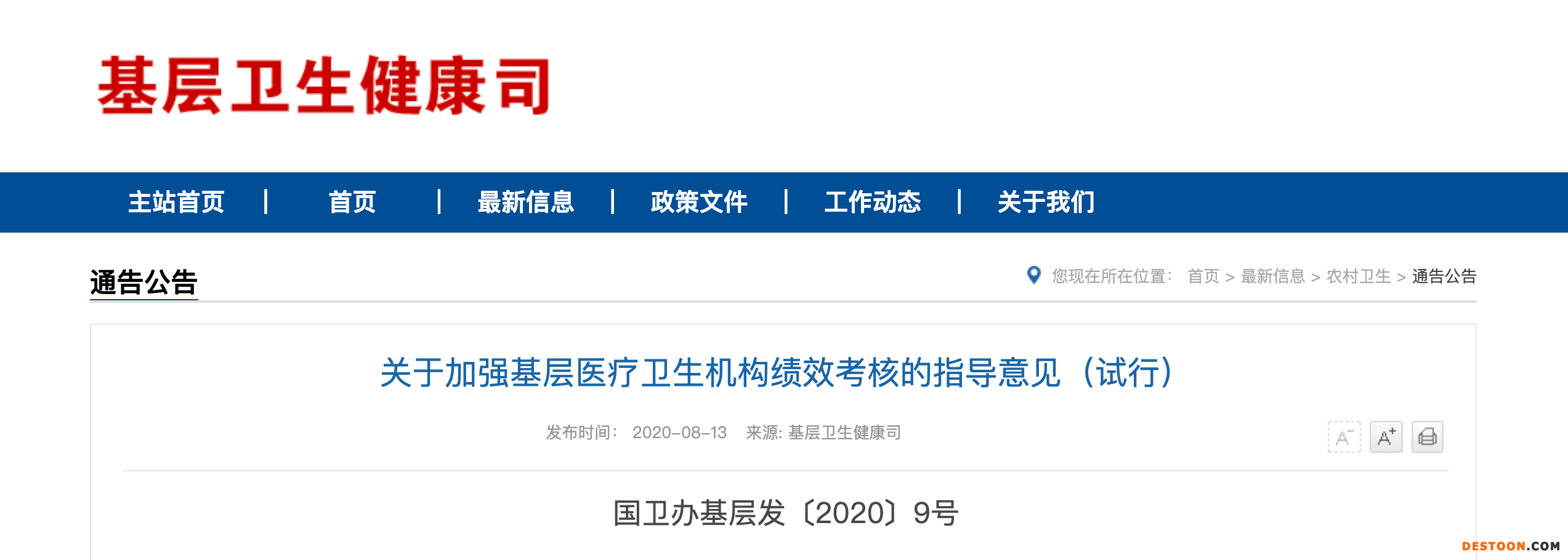 8月14日訊 8月13日,國家衛(wèi)健委發(fā)布《關(guān)于加強基層醫(yī)療衛(wèi)生機構(gòu)績效考核的指導(dǎo)意見(試行)》(以下建成《意見》),基層醫(yī)療機構(gòu)績效考核有了國家統(tǒng)一標(biāo)準(zhǔn)。