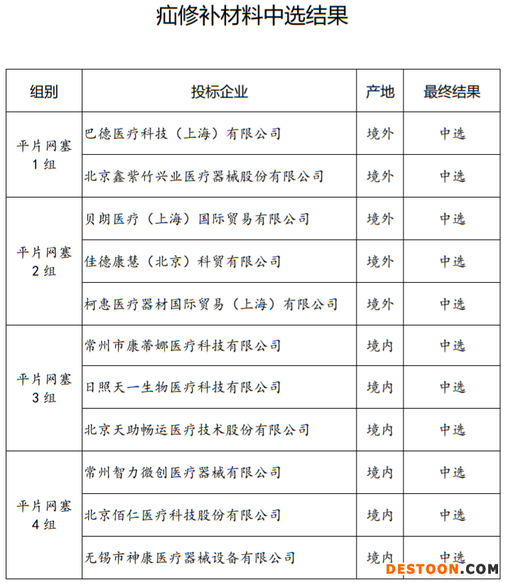醫(yī)藥網(wǎng)8月17日訊 8月12日,江蘇省醫(yī)保局發(fā)布《關(guān)于江蘇省第三輪公立醫(yī)療機(jī)構(gòu)醫(yī)用耗材組團(tuán)聯(lián)盟集中采購(gòu)談判結(jié)果的公告》,對(duì)初次置換人工膝關(guān)節(jié)、人工硬腦(脊)膜、疝修補(bǔ)材料相關(guān)組別的聯(lián)盟帶量采購(gòu)談判中選結(jié)果予以公布。