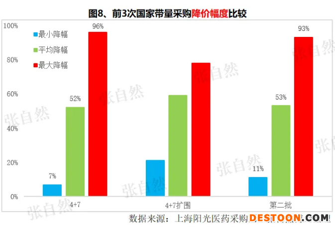 前3次集采,平均降幅基本維持在50%多一點的水平,單一品種的最高降幅都超過90%、最低降幅在10%左右。