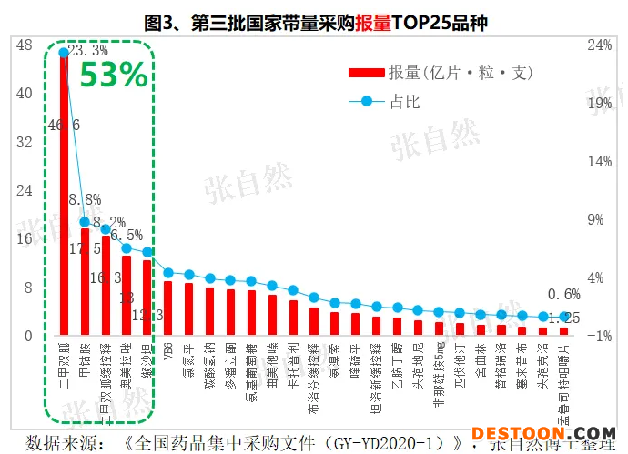 筆者曾發(fā)表了《第三批帶量采購,6張圖表深度剖析》,現(xiàn)承接上文再圍繞第三批帶量采購的報量做進一步分析。