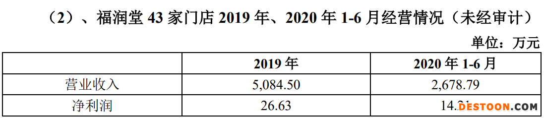 截至2019年12月31日,福潤(rùn)堂資產(chǎn)總額3277.04萬元,負(fù)債總額2575.77萬元,凈資產(chǎn)701.27萬元,2019年實(shí)現(xiàn)營(yíng)業(yè)收入5084.50萬元,凈利潤(rùn)26.63萬元。(未經(jīng)審計(jì))