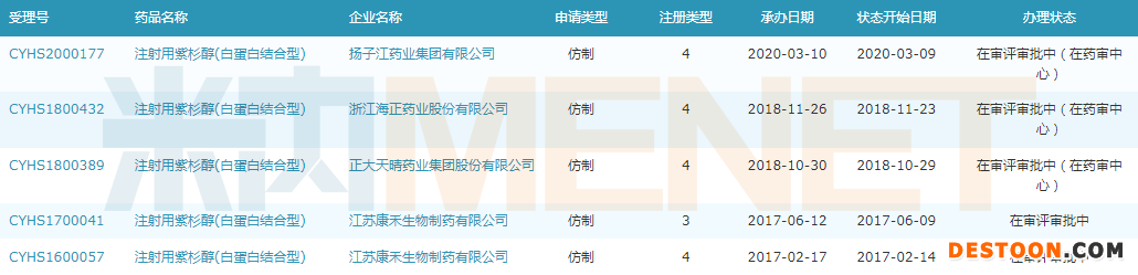 目前,仍有正大天晴藥業(yè)集團(tuán)、海正藥業(yè)、康禾生物、揚(yáng)子江藥業(yè)集團(tuán)的注射用紫杉醇(白蛋白結(jié)合型)上市申請正在審評中。