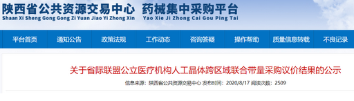 8月20日訊 8月17日,陜西省公共資源交易中心發(fā)布《關(guān)于省際聯(lián)盟公立醫(yī)療機(jī)構(gòu)人工晶體跨區(qū)域聯(lián)合帶量采購議價(jià)結(jié)果的公示》。