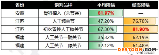 Ø 關節(jié)類:安徽平均降幅81.97%(最高降幅暫缺),江蘇膝關節(jié)最高降幅81.90%