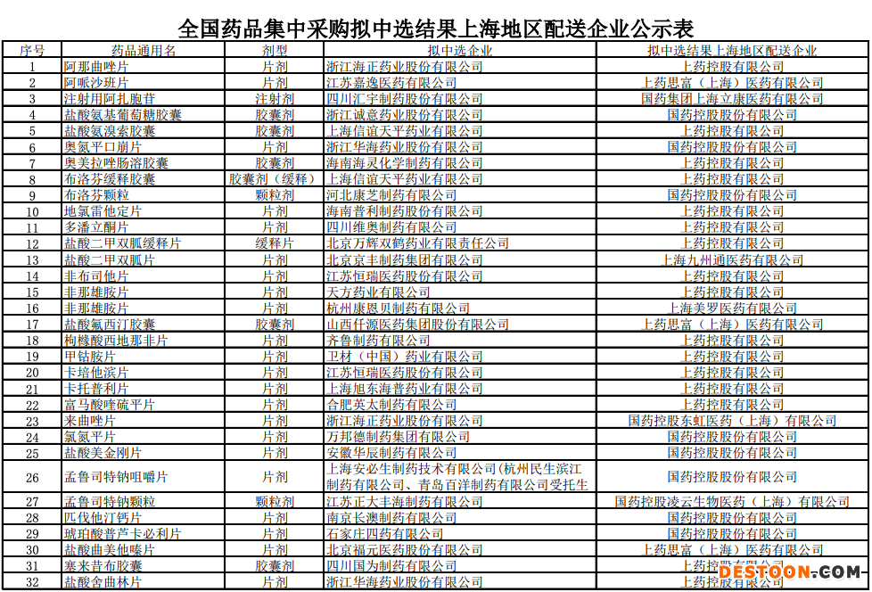 8月24日訊 8月21日,上海陽光醫(yī)藥采購網(wǎng)發(fā)布《全國藥品集中采購擬中選結果上海地區(qū)配送企業(yè)公示》。