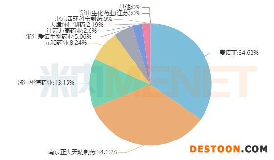 圖2:2019年厄貝沙坦氫氯噻嗪的企業(yè)競(jìng)爭(zhēng)格局