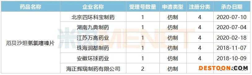 表1:2018年至今在審的厄貝沙坦氫氯噻嗪仿制上市申請(qǐng)情況
