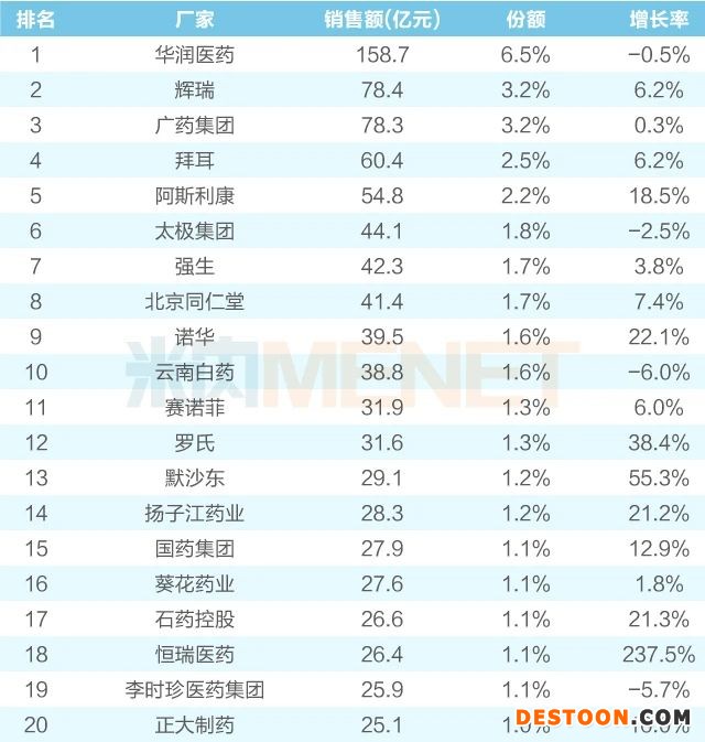 華潤、輝瑞、廣藥……領(lǐng)軍企業(yè)TOP20