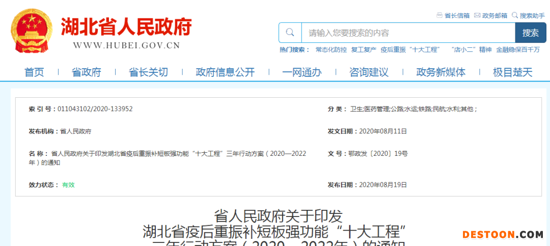 8月26日訊 湖北疫后補(bǔ)短板強(qiáng)功能火力全開(kāi)!近日,湖北省印發(fā)《湖北省疫后重振補(bǔ)短板強(qiáng)功能“十大工程”三年行動(dòng)方案(2020-2022年)》(以下簡(jiǎn)稱《方案》),啟動(dòng)疫后重振“十大工程”。