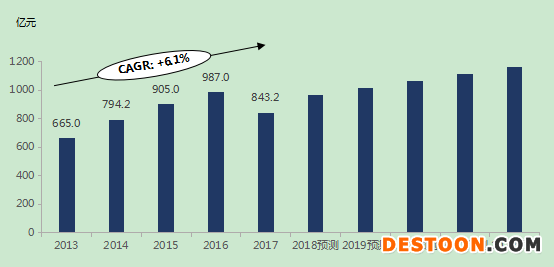 中國慢性病藥物市場規(guī)模,2013~2022年(預(yù)測)