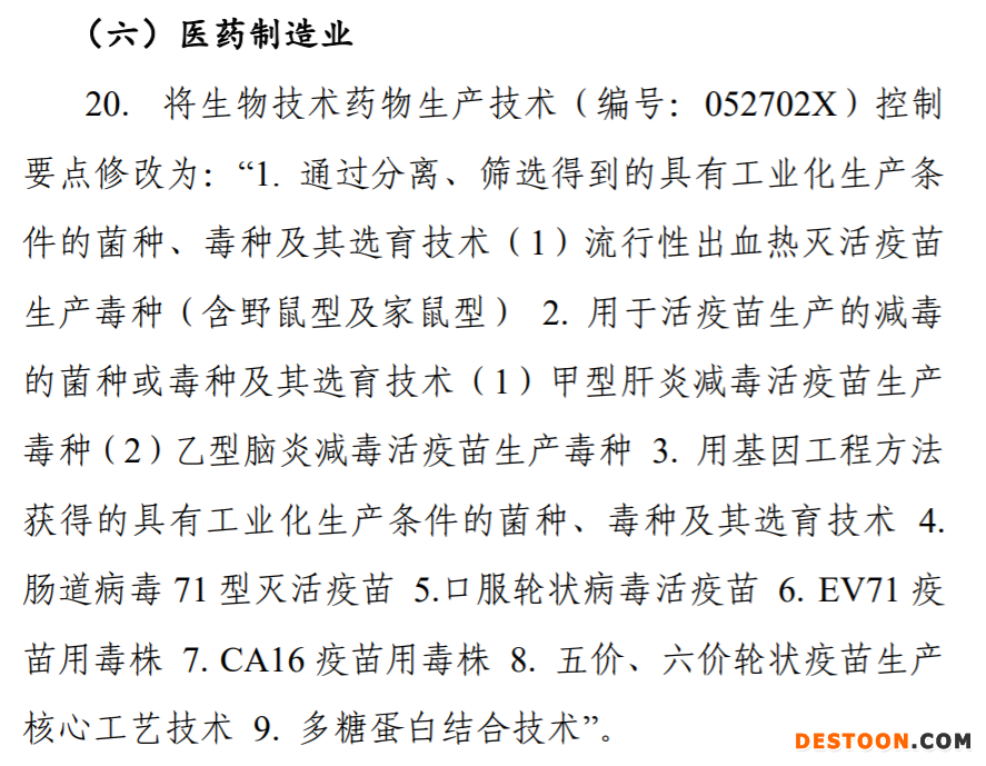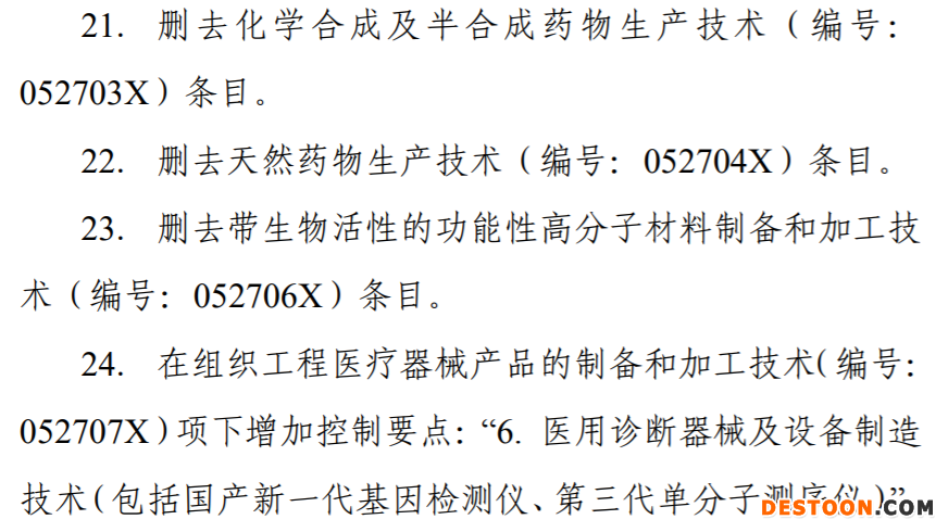 本次《目錄》共涉及53項技術(shù)條目:與醫(yī)藥制造業(yè)相關(guān)的禁止出口的技術(shù)條目3項;限制出口的技術(shù)條目5項。