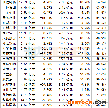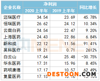 A股醫(yī)藥企業(yè)2020上半年凈利潤TOP10(單位:億元)