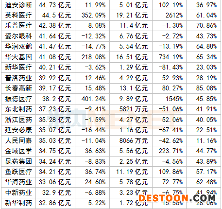 A股醫(yī)藥企業(yè)2020上半年?duì)I收TOP10(單位:億元)