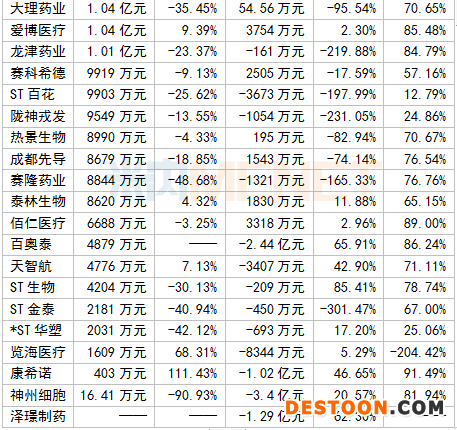 A股醫(yī)藥企業(yè)2020上半年毛利率TOP10