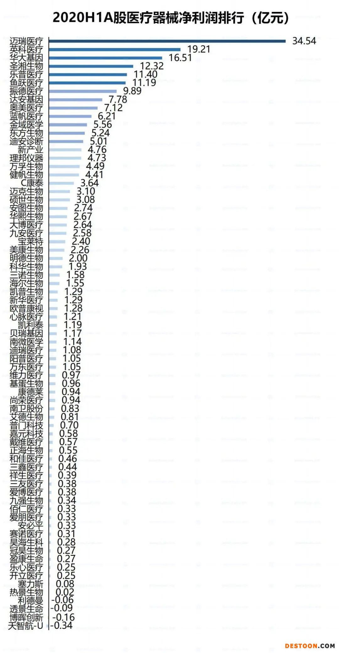 在凈利潤(rùn)上,邁瑞醫(yī)療34.54億元位列第一;圣湘、樂普和魚躍3家凈利潤(rùn)均超在10億。但有4家凈利潤(rùn)虧損。