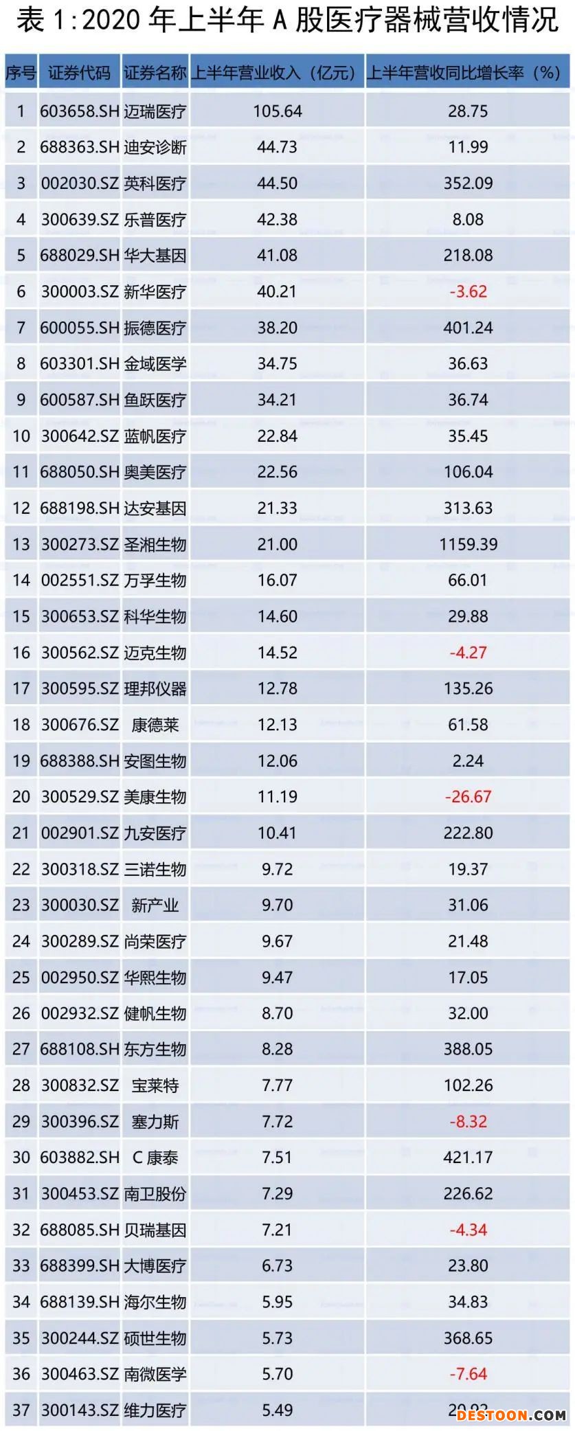 在營(yíng)收增速上,圣湘生物最快,高達(dá)1159.4%;英科醫(yī)療增速超300%;健帆生物等7家械企增速超100%。但有25家企業(yè)出現(xiàn)下滑。
