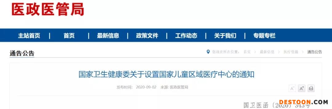 9月4日訊 9月2日,國家衛(wèi)健委發(fā)布《國家衛(wèi)生健康委關(guān)于設(shè)置國家兒童區(qū)域醫(yī)療中心的通知》,決定在東北區(qū)域、華東區(qū)域、中南區(qū)域、西南區(qū)域、西北區(qū)域設(shè)置國家兒童區(qū)域醫(yī)療中心。