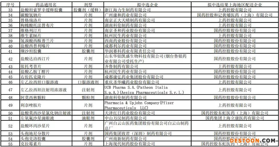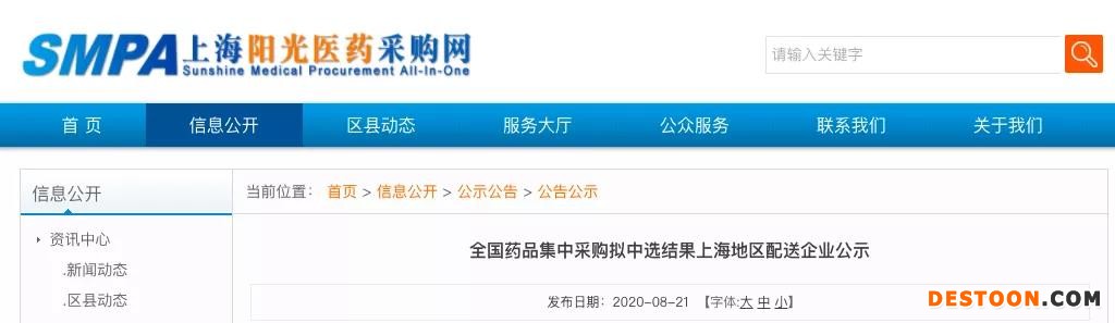 此外,上海陽光醫(yī)藥采購網(wǎng)在8月21日發(fā)布了《全國藥品集中采購擬中選結(jié)果上海地區(qū)配送企業(yè)公示》。