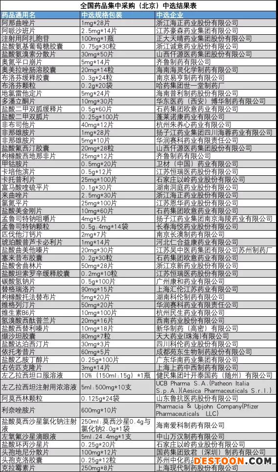 申報時間為:2020年9月4日-9月11日。第三批國家集采北京中選結(jié)果如下: