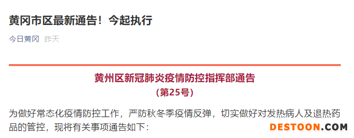為做好常態(tài)化疫情防控工作,嚴(yán)防秋冬季疫情反彈,切實(shí)做好對發(fā)熱病人及退熱藥品的管控,黃州區(qū)新冠肺炎疫情防控指揮部發(fā)布了最新通告。該通告自2020年9月4日起執(zhí)行。
