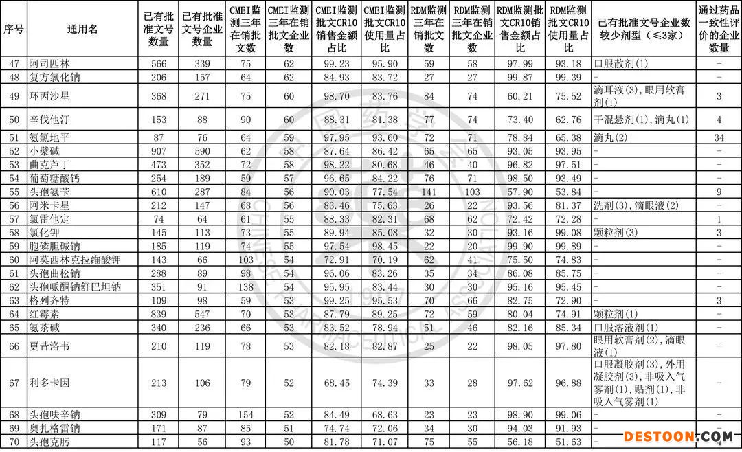 另,從已公布的目錄來看,目前很多品種已經(jīng)高度飽和,并不適合繼續(xù)申報(bào)新的批文,尤其是普藥,例如氨氯地平片、阿莫西林膠囊等,競(jìng)爭極其激烈,并且氨氯平片有34家通過一致性評(píng)價(jià),阿莫西林有19家通過一致性評(píng)價(jià)。在集中采購逐漸常態(tài)化之下,低質(zhì)量不具競(jìng)爭的仿制藥逐漸被淘汰,過度重復(fù)藥品目錄的發(fā)布,有力的幫助了企業(yè)決策,同時(shí)從行政手段來限制藥企的申報(bào),為先獲得批文的生產(chǎn)廠家制造了競(jìng)爭壁壘。一些不具市場(chǎng)競(jìng)爭的企業(yè),很可能會(huì)逐漸被市場(chǎng)淘汰,最終注銷批文。從另一方便來看或?qū)⒂行У奶嵘怂幤返馁|(zhì)量,做到質(zhì)優(yōu)價(jià)廉,保障了資源的合理利用,又福利了患者。