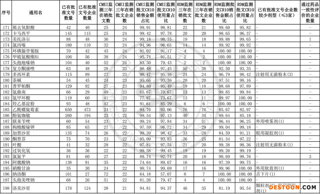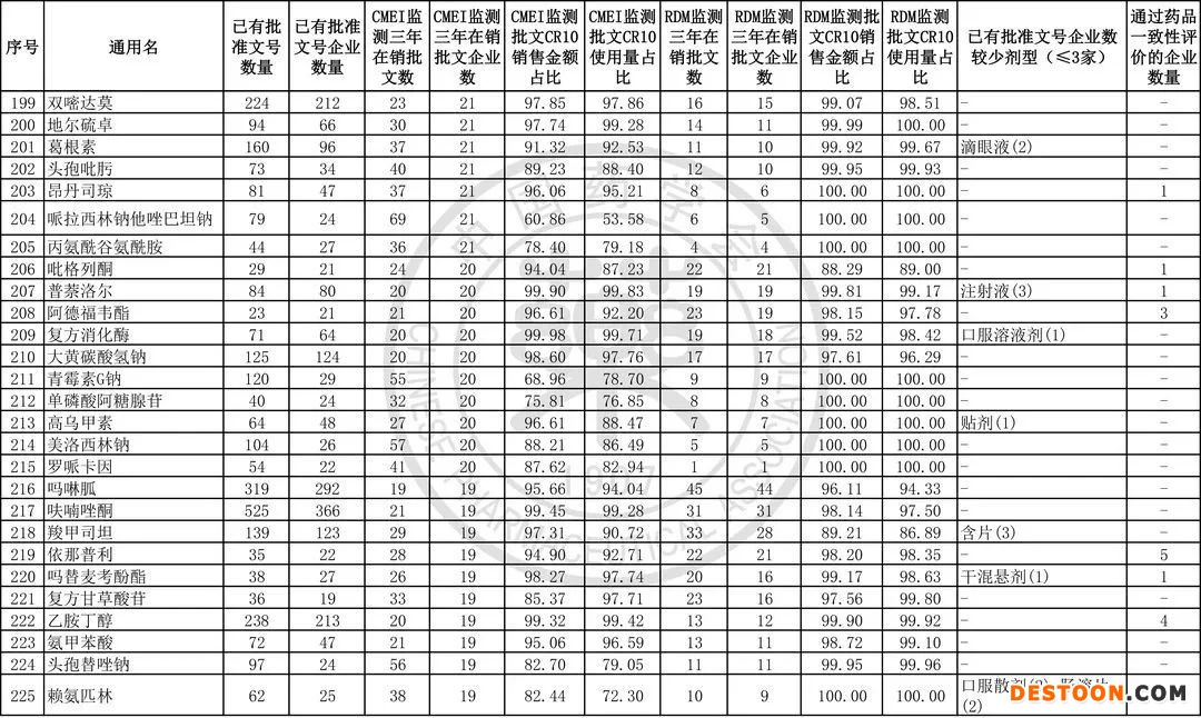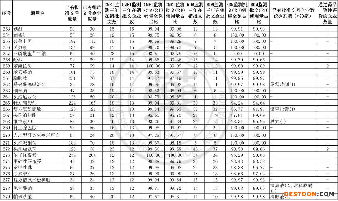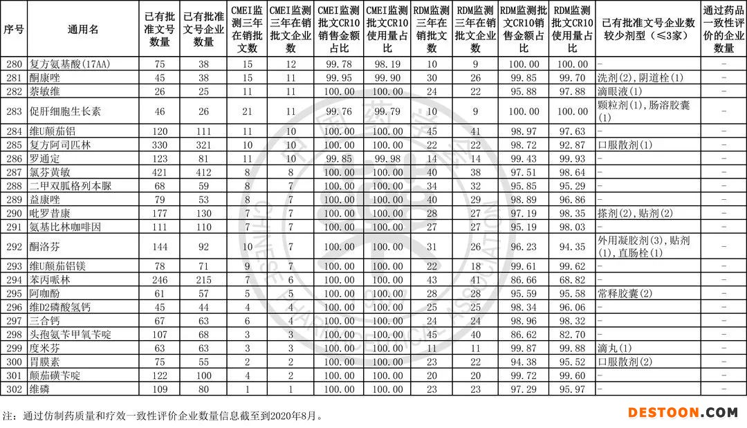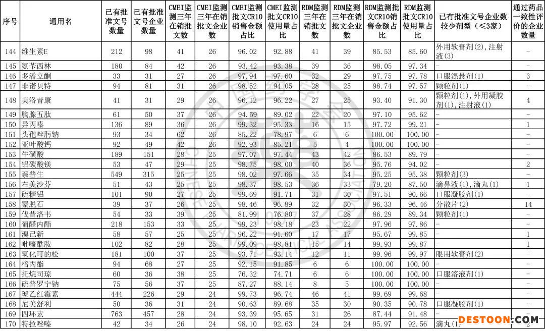 根據(jù)公告顯示, 該目錄是中國藥學(xué)會(huì)和國家藥品監(jiān)督管理局信息中心、南方醫(yī)藥經(jīng)濟(jì)研究所共同協(xié)作,對(duì)已獲批上市藥品在2017-2019年間的銷售情況進(jìn)行監(jiān)測(cè)分析,形成第六批過度重復(fù)藥品提示信息目錄,共302個(gè)過度重復(fù)品種,涉及臨床藥理學(xué)和治療學(xué)分類的14個(gè)大類、60個(gè)亞類,與《關(guān)于發(fā)布第五批過度重復(fù)藥品提示信息的公告》發(fā)布的過度重復(fù)品種目錄相比,調(diào)出1個(gè)品種;目錄提示信息新增兩項(xiàng)數(shù)據(jù)內(nèi)容,一是基于中國上市藥品目錄集對(duì)通過仿制藥質(zhì)量和療效一致性評(píng)價(jià)的企業(yè)數(shù)量進(jìn)行標(biāo)注;二是基于藥品已有批文數(shù)據(jù)庫,對(duì)已有批文企業(yè)數(shù)≤3的劑型進(jìn)行標(biāo)注。