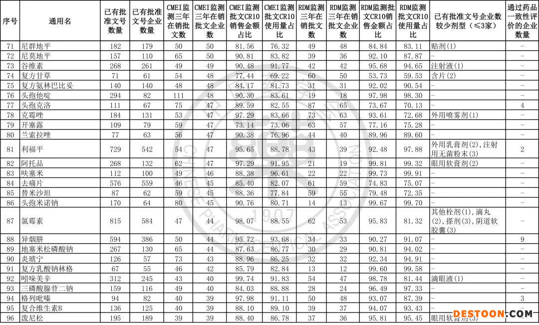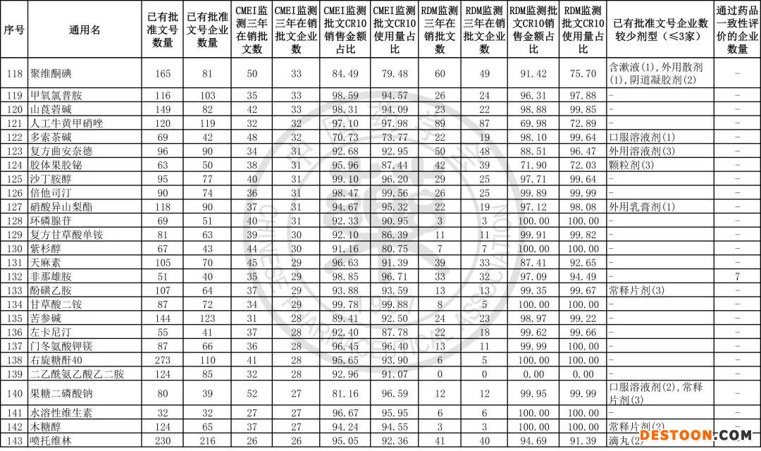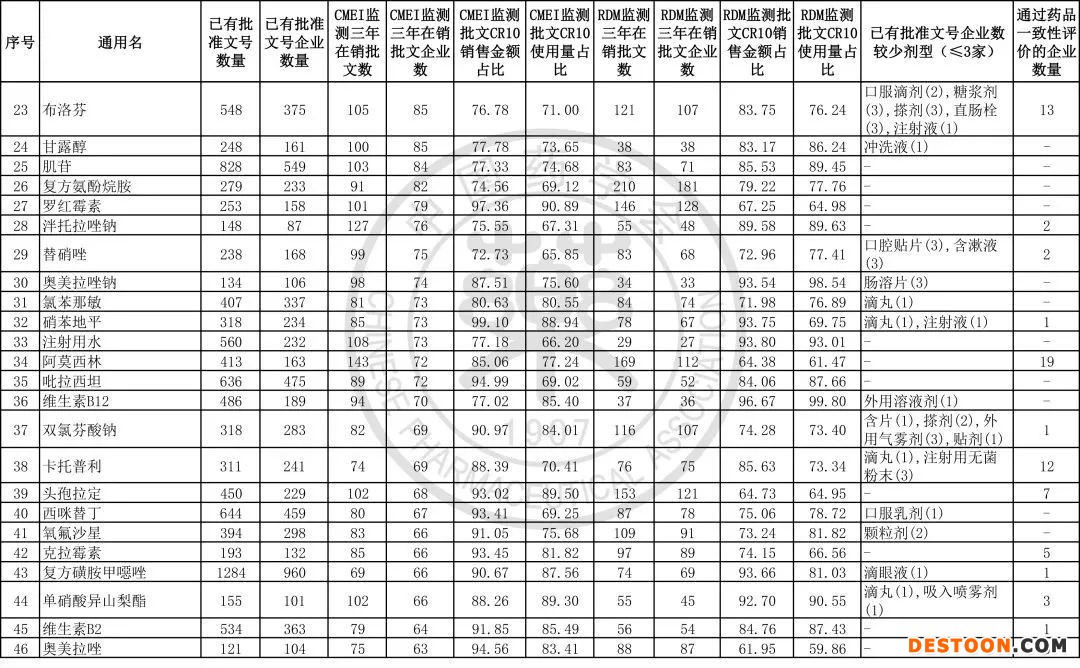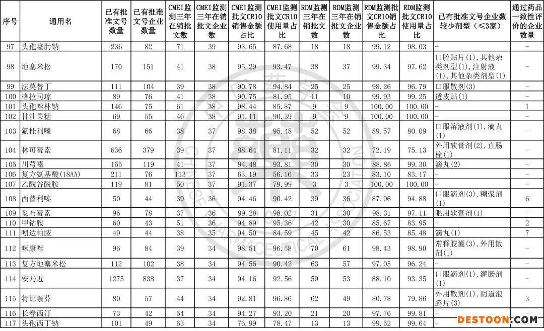 根據(jù)公告顯示, 該目錄是中國藥學(xué)會(huì)和國家藥品監(jiān)督管理局信息中心、南方醫(yī)藥經(jīng)濟(jì)研究所共同協(xié)作,對(duì)已獲批上市藥品在2017-2019年間的銷售情況進(jìn)行監(jiān)測(cè)分析,形成第六批過度重復(fù)藥品提示信息目錄,共302個(gè)過度重復(fù)品種,涉及臨床藥理學(xué)和治療學(xué)分類的14個(gè)大類、60個(gè)亞類,與《關(guān)于發(fā)布第五批過度重復(fù)藥品提示信息的公告》發(fā)布的過度重復(fù)品種目錄相比,調(diào)出1個(gè)品種;目錄提示信息新增兩項(xiàng)數(shù)據(jù)內(nèi)容,一是基于中國上市藥品目錄集對(duì)通過仿制藥質(zhì)量和療效一致性評(píng)價(jià)的企業(yè)數(shù)量進(jìn)行標(biāo)注;二是基于藥品已有批文數(shù)據(jù)庫,對(duì)已有批文企業(yè)數(shù)≤3的劑型進(jìn)行標(biāo)注。