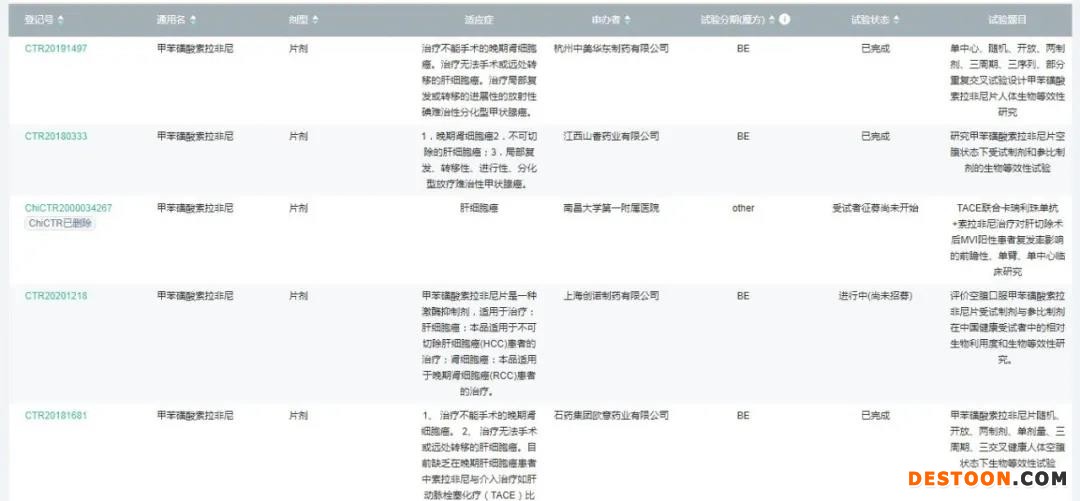 此外,據(jù)醫(yī)藥魔方數(shù)據(jù)庫顯示,石藥歐意、正大天晴、亞寶藥業(yè)、輔仁藥業(yè)均也已在布局研發(fā)索拉非尼。