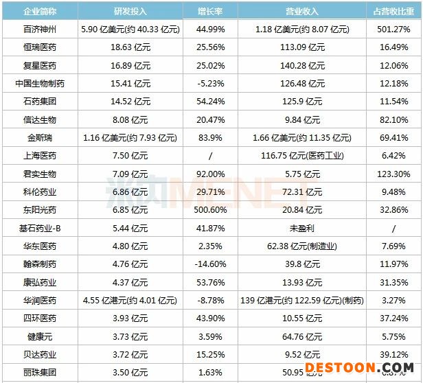 42家藥企研發(fā)占營收比重達10%及以上,這5家超過100%