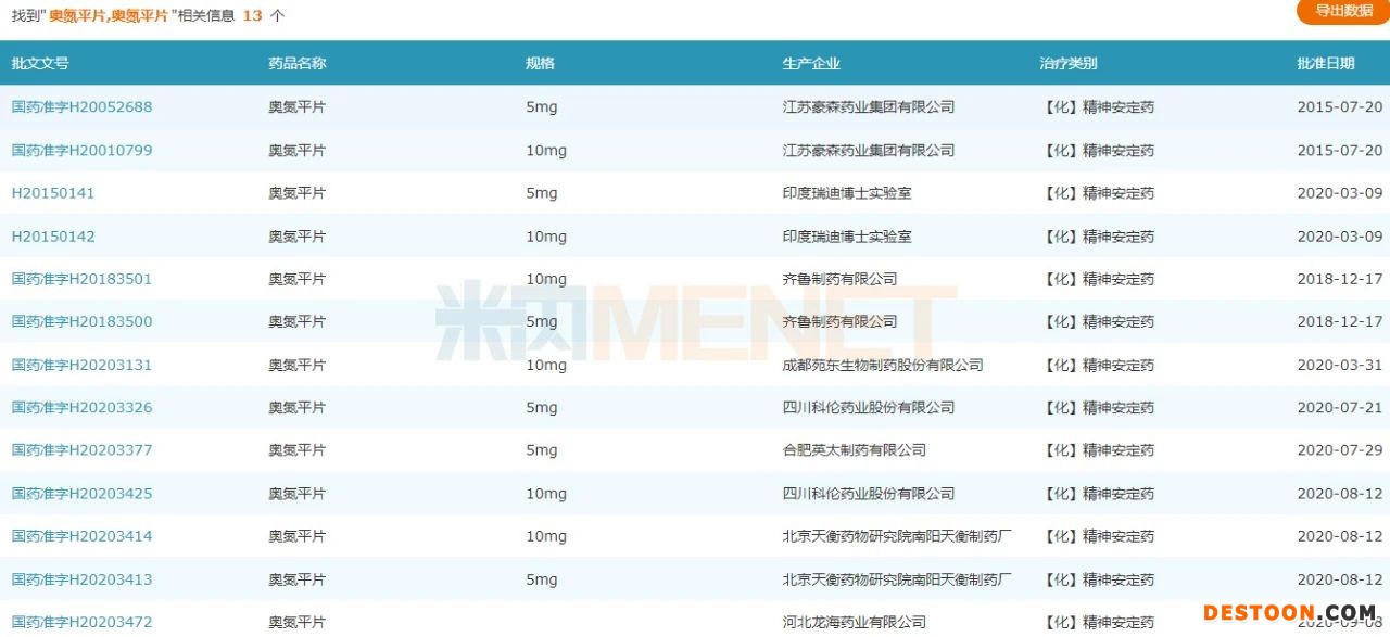 截至目前,奧氮平片共有10家生產(chǎn)企業(yè),其中,江蘇豪森藥業(yè)集團(tuán)、齊魯制藥、四川科倫藥業(yè)、成都苑東生物制藥等8家是國內(nèi)企業(yè)。