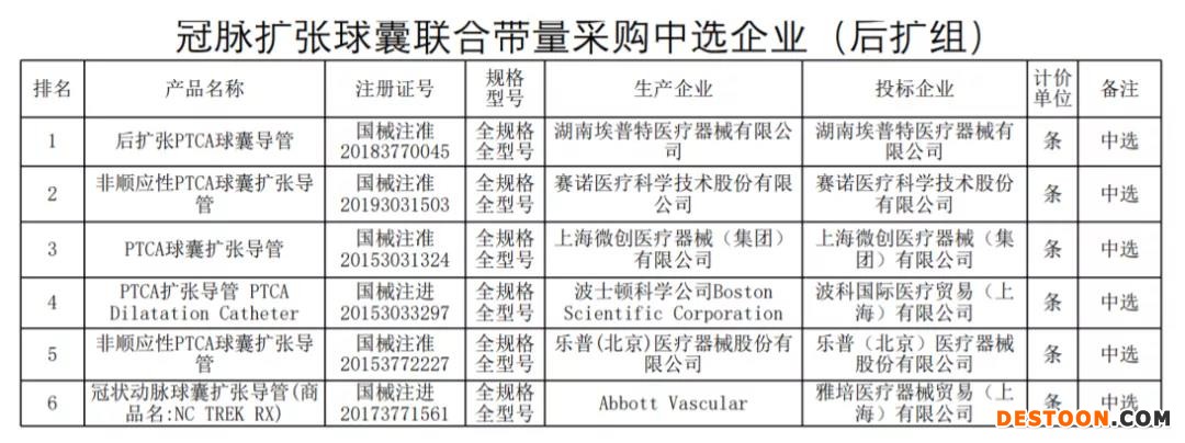 預(yù)擴(kuò)組冠脈擴(kuò)張球囊中選企業(yè)包括湖南埃普特、上海微創(chuàng)、吉威醫(yī)療、波科、樂(lè)普、美敦力。