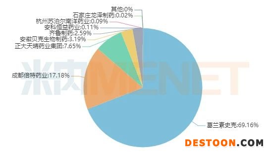 圖2:2019年中國公立醫(yī)療機構(gòu)終端富馬酸替諾福韋二吡呋酯片的企業(yè)格局