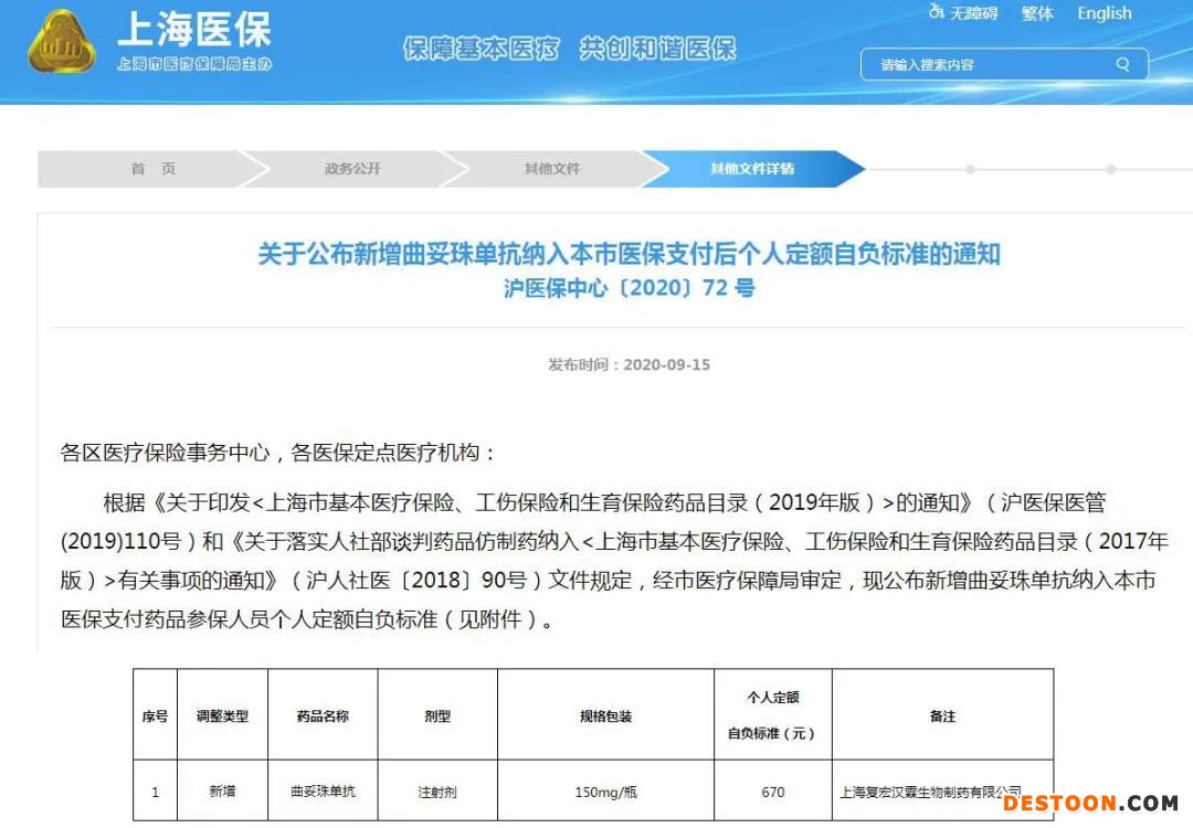 9月18日訊 近日,上海醫(yī)保局發(fā)文,將復(fù)宏漢霖曲妥珠單抗注射液納入本市醫(yī)保,參保人員個人定額自付標(biāo)準(zhǔn)為670元/瓶(150mg)。