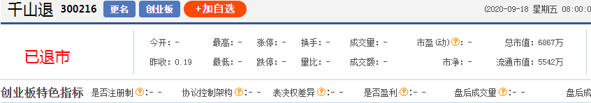 9月15日,千山退(千山藥機)發(fā)布公告稱,公司股票于2020年8月5日進入退市整理期,截至9月15日已滿30個交易日,退市整理期已結(jié)束。公司股票已被深交所決定終止上市,將在9月16號被摘牌。千山藥機從進入退市整理期股價開始連續(xù)29個一字跌停,最終股價定格在0.19元,與歷史高價相比跌幅達99.75%,創(chuàng)下A股最大下跌紀錄。據(jù)了解,千山藥機在2015-2016年年報中存在虛減應收賬款、壞賬準備、虛增利潤等情形,兩年虛增利潤合計超4億元;2017年存在信披違規(guī)等情形,近三年公司凈利潤虧損合計超過35億元。截至2020年5月,千山藥機股東人數(shù)4.82萬。