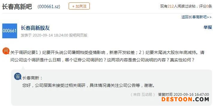 目前,對于長春高新股價較大波動主要有兩種觀點。一是,媒體報道中調(diào)研事件公司高管給出的業(yè)績指引不及預期,以及未來存在高管減持的安排,引發(fā)了投資者的擔憂情緒;二是,長春高新此前漲幅過高,資金抱團意愿松散。9月16日,長春高新在互動平臺表示,公司層面未接受過相關調(diào)研,具體情況請關注公司公告等。據(jù)統(tǒng)計,14-16日,在互動平臺與此次調(diào)研事件相關的提問就有多達近30條。