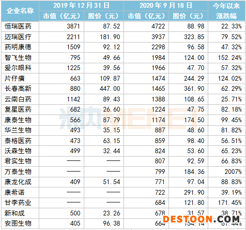 2017年11月,恒瑞醫(yī)藥成為首只市值超2000億元的醫(yī)藥股;2018年6月,市值突破3000億元;2019年10月,市值沖破4000億元;今年6月,市值再創(chuàng)新高突破5000億大關,穩(wěn)坐“醫(yī)藥股一哥”寶座。而近期A股市場各板塊出現(xiàn)不同程度的回調(diào),截至9月18日收盤,恒瑞醫(yī)藥市值回落至4722億元,今年以來漲幅超20%。