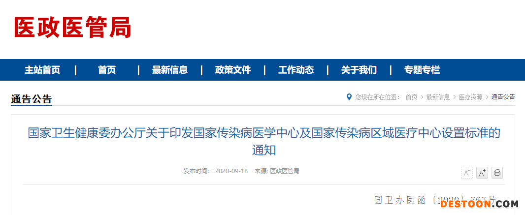9月22日訊 9月18日),國家衛(wèi)健委最新發(fā)布了《關(guān)于印發(fā)國家傳染病醫(yī)學中心及國家傳染病區(qū)域醫(yī)療中心設(shè)置標準的通知》(以下簡稱《通知》)。