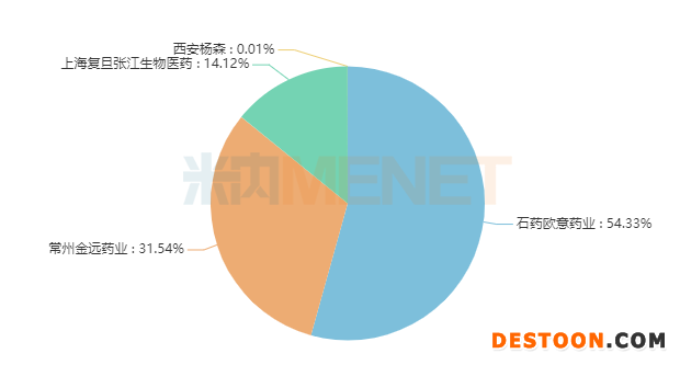 鹽酸多柔比星脂質(zhì)體注射液2015年在中國公立醫(yī)療機(jī)構(gòu)終端銷售額突破10億元,2017年突破20億元,2019年成為超34億元的重磅產(chǎn)品,目前在執(zhí)行的省級醫(yī)保目錄涉及廣西、河北、遼寧、寧夏以及新疆。從企業(yè)競爭情況來看,石藥歐意藥業(yè)占半壁江山,主要布局集中在城市公立醫(yī)院;常州金遠(yuǎn)藥業(yè)市場份額也超過30%,主要布局也是在城市公立醫(yī)院,但其在縣級公立醫(yī)院的布局實力也不容忽視。