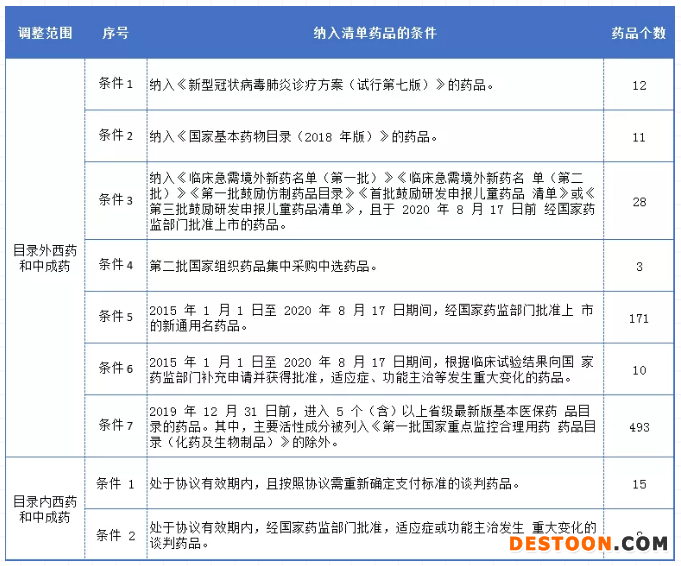 2020年國家醫(yī)保藥品目錄調(diào)整納入名單藥的條件及藥品個數(shù)