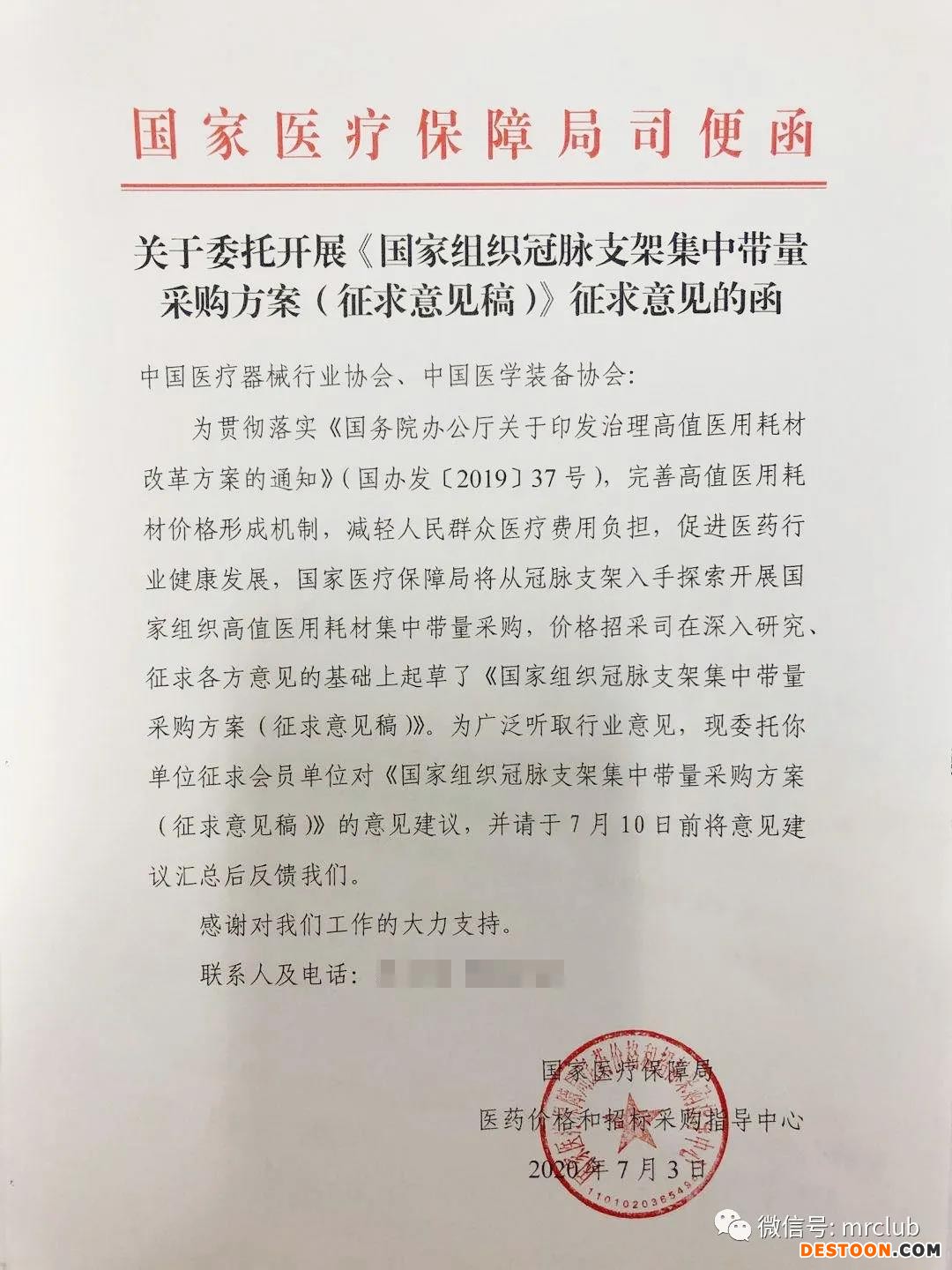 今年 7 月 3 日,一份國(guó)家醫(yī)保局的“關(guān)于委托開(kāi)展《國(guó)家組織冠脈支架集中帶量采購(gòu)方案(征求意見(jiàn)稿)》征求意見(jiàn)的函”在業(yè)界流傳,從內(nèi)容來(lái)看,國(guó)家醫(yī)保局將從冠脈支架入手探索開(kāi)展國(guó)家組織高值醫(yī)用耗材集中帶量采購(gòu),基于此,國(guó)家醫(yī)保局價(jià)格招采司在深入研究、征求多方意見(jiàn)的基礎(chǔ)上起草了《國(guó)家組織冠脈支架集中帶量采購(gòu)方案(征求意見(jiàn)稿)》,特委托中國(guó)醫(yī)療器械行業(yè)協(xié)會(huì)、中國(guó)醫(yī)學(xué)裝備協(xié)會(huì)征求會(huì)員單位的意見(jiàn)。