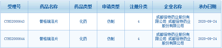 9月27日訊 9月24日,CDE官網(wǎng)顯示,成都倍特藥業(yè)的替格瑞洛片以仿制4類申請(qǐng)上市獲得受理。米內(nèi)網(wǎng)數(shù)據(jù)顯示,2019年在中國(guó)公立醫(yī)療機(jī)構(gòu)終端替格瑞洛片銷售額超過(guò)15億元,其中,阿斯利康的市場(chǎng)份額占比超過(guò)95%。國(guó)內(nèi)已有石藥集團(tuán)歐意藥業(yè)、南京正大天晴、浙江海正藥業(yè)、揚(yáng)子江藥業(yè)集團(tuán)廣州海瑞藥業(yè)等8家仿制藥企業(yè),且均已過(guò)評(píng)。此外,還有四川科倫藥業(yè)、廣東東陽(yáng)光藥業(yè)、山東羅欣藥業(yè)等超過(guò)20家企業(yè)申報(bào)上市在審評(píng)審批中(在藥審中心)。