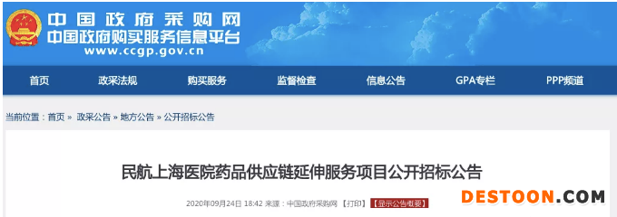 9月24日,中國政府采購網(wǎng)發(fā)布《民航上海醫(yī)院藥品供應(yīng)鏈延伸服務(wù)項(xiàng)目公開招標(biāo)公告》。