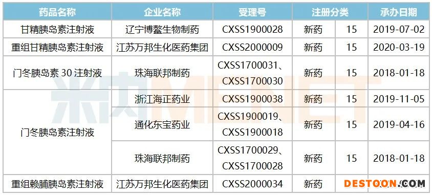 表6:2018年至今在審的國產(chǎn)胰島素上市申請
