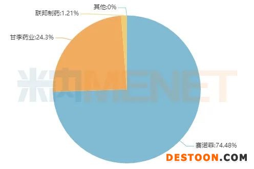 從TOP10品牌來看,國產(chǎn)品牌占了三個席位:甘李藥業(yè)的重組甘精胰島素注射液直接沖擊的是賽諾菲重磅產(chǎn)品甘精胰島素注射液,從該品種競爭企業(yè)的份額來看,賽諾菲從2018年的76.99%下滑至2020上半年的74.48%,而甘李藥業(yè)則從2018年22.65%上漲至2020上半年的24.30%。