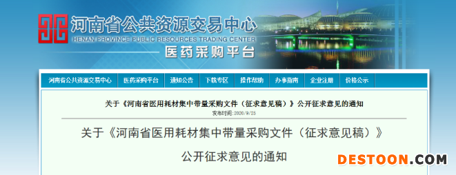 9月29日訊 8月中旬,河南參加的渝貴云豫四省跨區(qū)域聯(lián)盟帶量談判活動(dòng)剛剛落地,幾乎同一時(shí)間,新一輪的省級(jí)單獨(dú)帶量采購(gòu)正在快馬加鞭趕來(lái)——開展人工晶體和留置針類耗材生產(chǎn)企業(yè)產(chǎn)品信息填報(bào)工作、發(fā)布《河南省開展藥品醫(yī)用耗材集中采購(gòu)和使用工作實(shí)施方案》,9月25日《河南省醫(yī)用耗材集中帶量采購(gòu)文件(征求意見(jiàn)稿)》便公之于眾,2020年9月27日下午18:00前可將意見(jiàn)或建議(加蓋單位公章)的掃描件發(fā)送至hnhczbcg@163.com郵箱。這場(chǎng)帶量采購(gòu)的開展可謂是雷厲風(fēng)行,絲毫不拖泥帶水。下面就讓小編帶您瀏覽一下本次帶量采購(gòu)的具體規(guī)則: