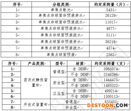 在允許多家企業(yè)中選、允許企業(yè)間中選價(jià)格存在差異的情況下,各品種采購(gòu)量?jī)?yōu)先使用價(jià)格最低產(chǎn)品。根據(jù)同組產(chǎn)品根據(jù)符合申報(bào)條件產(chǎn)品數(shù),確定中選產(chǎn)品數(shù)量,人工晶體擬中選產(chǎn)品最多9個(gè),而留置針按 70%的入圍比例確定中選產(chǎn)品數(shù),出現(xiàn)小數(shù)的實(shí)行四舍五入。不保證所有分組一定有中選結(jié)果,若某分組無(wú)中選結(jié)果,組織專家將該分組的約定采購(gòu)量按功能相近原則,調(diào)配到相近分組。